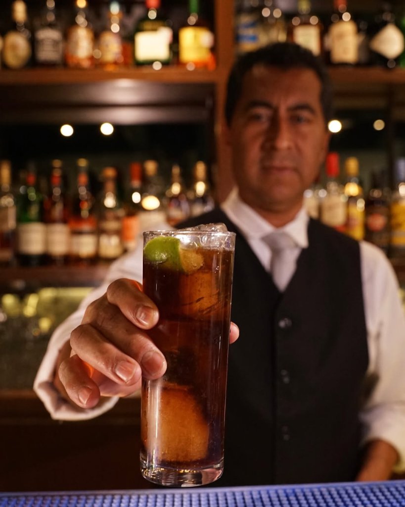 La decoración se mantiene fiel a su historia: maderas de época, cortinas rojas y tapicería dorada. Aunque ya no se sirve botana con la bebida, su carta incluye platos como pulpo, lechón o chiles en nogada.