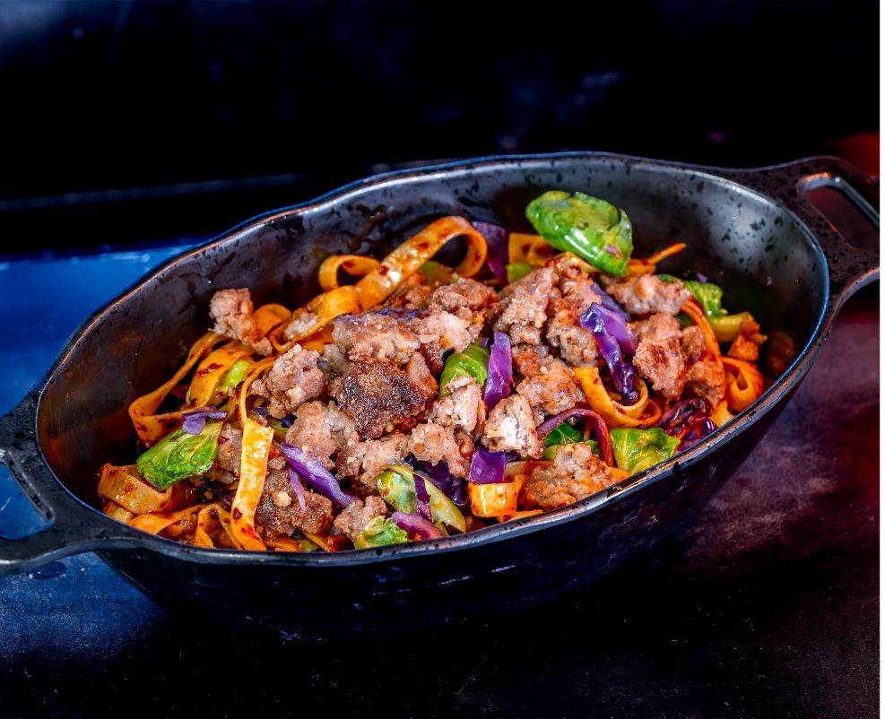 Por ejemplo, de lo más top que encontrarás son los Chili Noodles con Dewback, no te aseguramos que sea real carne de dewback, pero sí que lucen apetitosos. También está la Brocheta de Falumpaset con papas crujientes y queso.