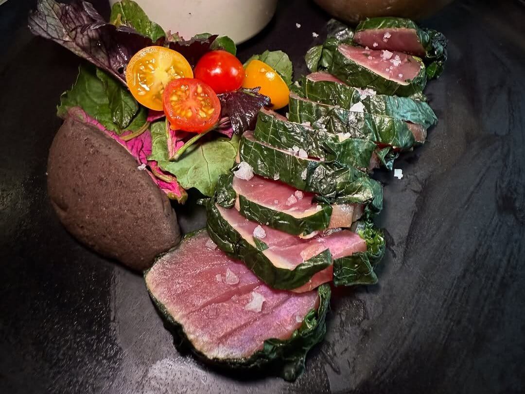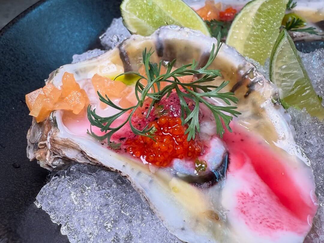 Desde el primer bocado, el menú sorprende con una explosión de sabores e innovación. Todo comienza con un ostión a la horchata, una entrada inesperada y refrescante. La sigue un delicado y preciosos tataki de atún, que bare paso al plato fuerte; pesca del Pacífico sazonada con mayonesa de chicatana y gusano de maguey, un homenaje potente y elegante a los ingredientes oaxaqueños.