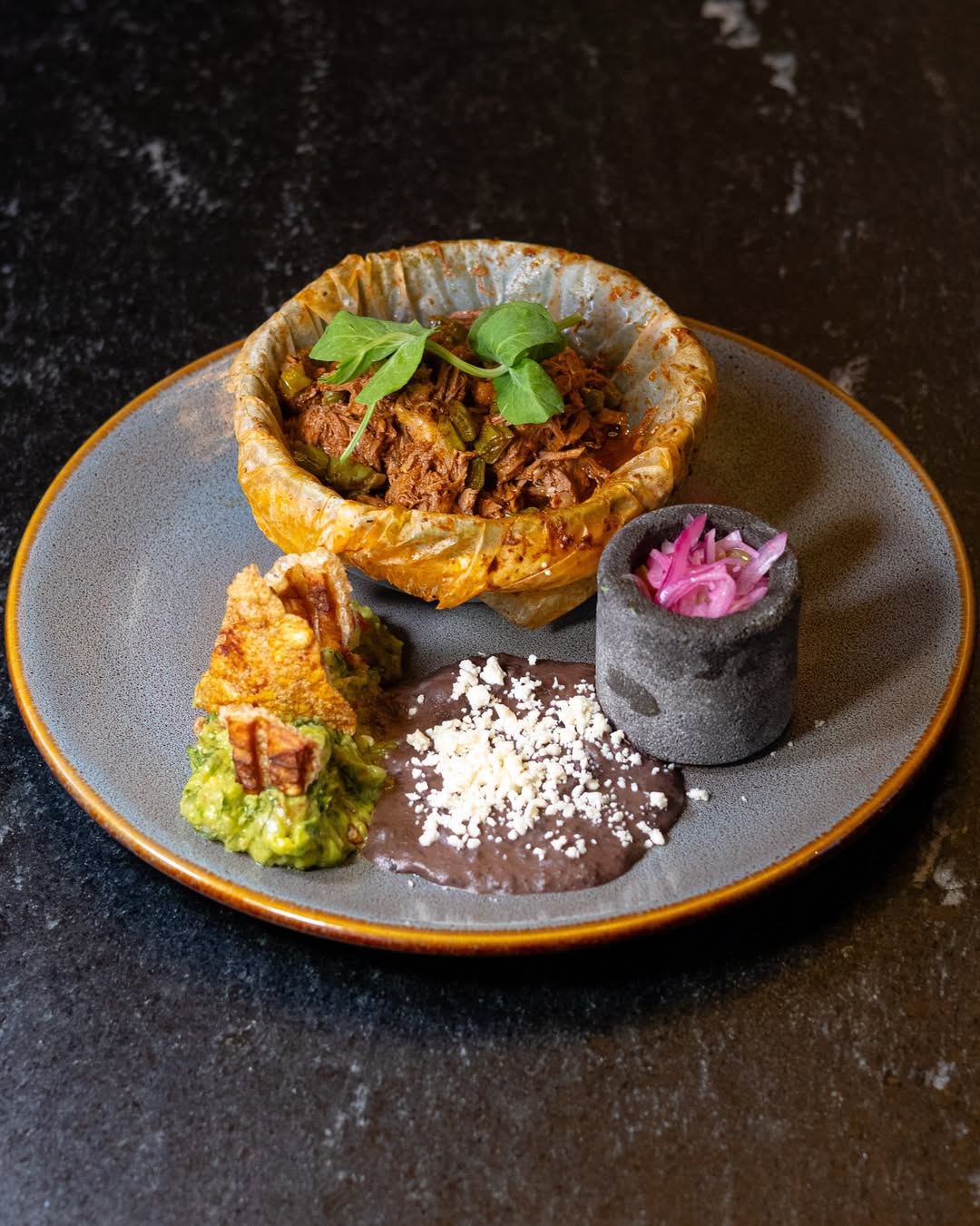 Menú: ostiones (con mignonette de mandarina y aceite de hojas de higo), crudo de atún, cóctel de camarón, langosta (con frijoles con erizo y tortillas de harina), pavo con puré y su consomé, y postres como volcán de dulce de leche y pay de nuez con helado.