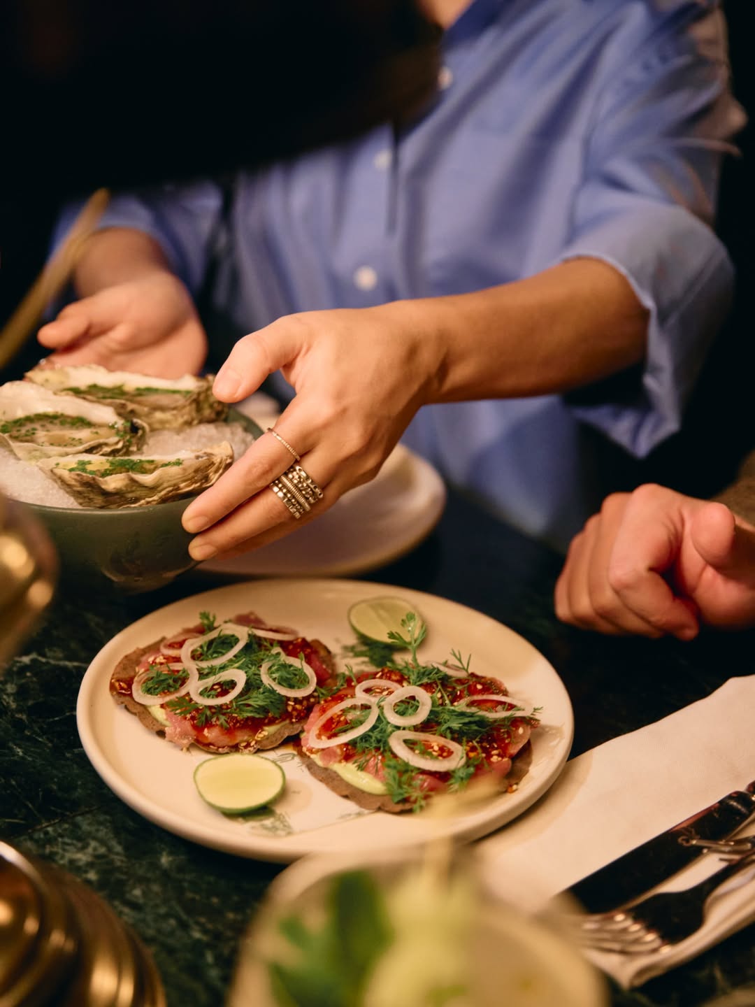 Para marisqueros de corazón: raw bar, ostiones y mariscos con mood de celebración. Además, el menú de esa noche incluye drinks, lo cual siempre se agradece cuando quieres que la cuenta sea más “predecible”.
