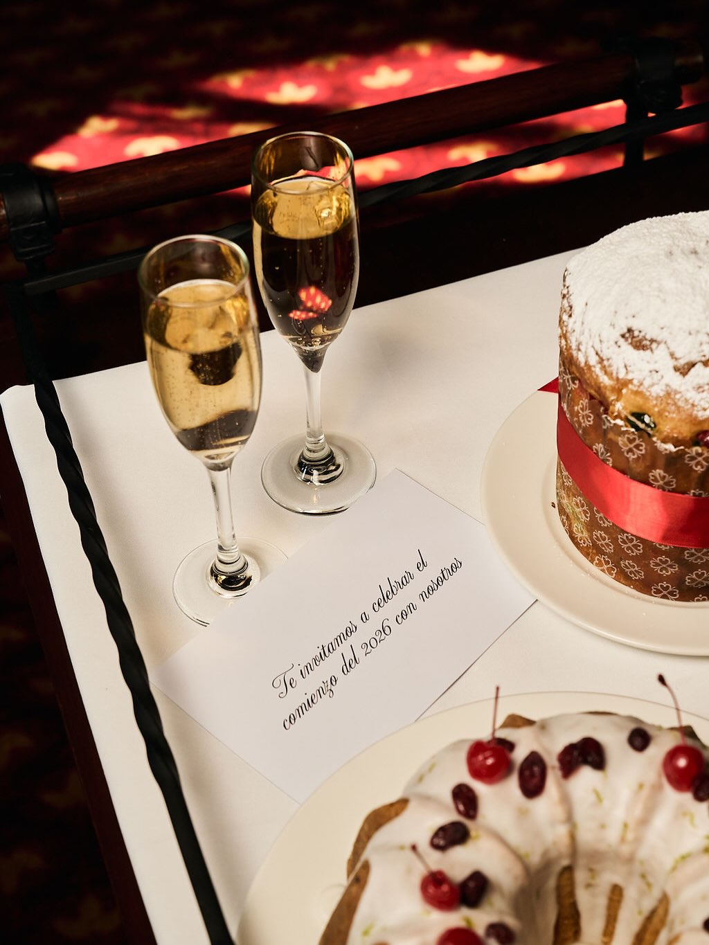 Precio: $3,500 MXN + servicio. Incluye 2 copas de vino rosado, 1 cóctel, café o té y copa de espumoso para recibir el año. (También hay opciones a la carta.)