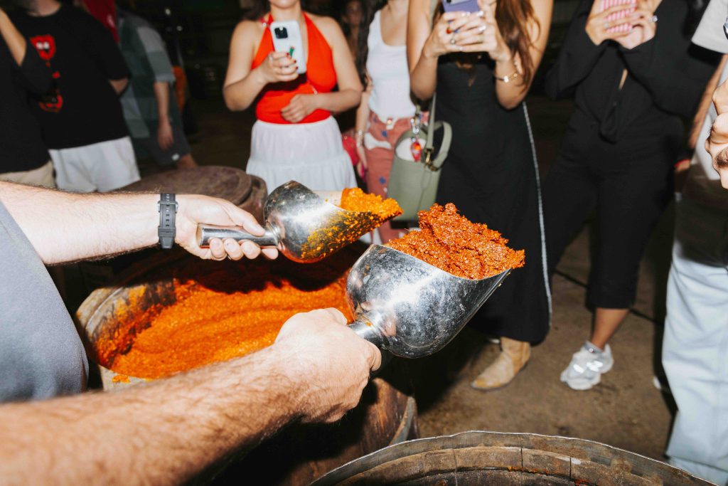 El proceso es un testamento al tiempo. Tras la molienda, la pasta de chile se sella en barricas de roble –muchas de ellas con una vida previa añejando bourbon– y se cubre con una gruesa capa de sal para permitir una fermentación lenta que dura tres años.