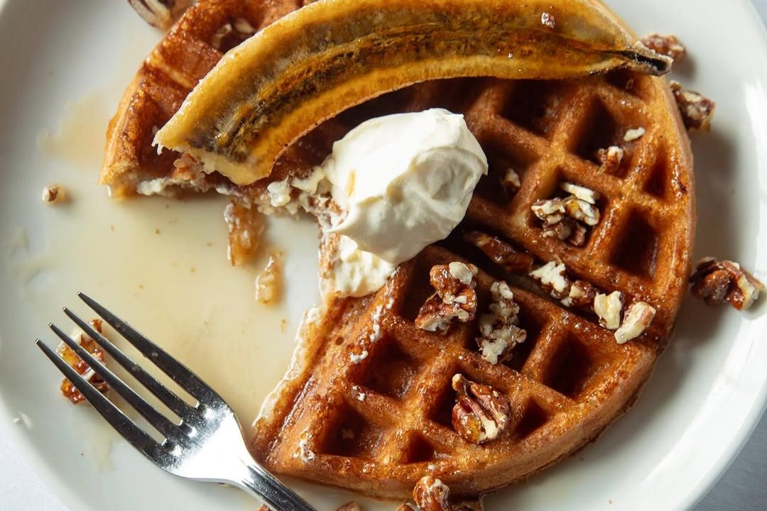 En la carta destacan los clásicos del brunch estilo diner: hotcakes, huevos en distintas preparaciones, sándwiches, waffles y café constante. Todo gira alrededor de una idea simple: comida abundante, reconfortante y sin pretensiones, perfecta para quienes buscan un brunch directo y cumplidor.