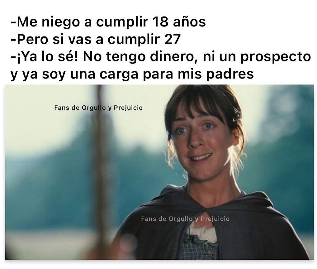 «Ya tengo 27 años, no tengo dinero ni un prospecto. Ya soy una carga para mis padres. y tengo miedo» que acompañan los usuarios con un pastel de cumpleaños indicando la edad de este personaje y el mismo sentimiento de desesperanza.