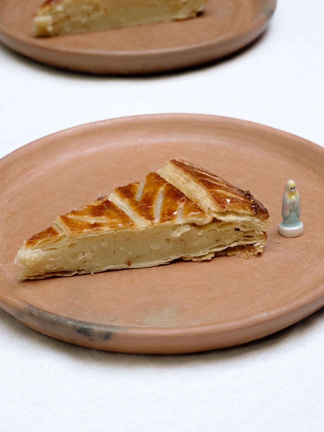 Además de su fève tradicional, este año juegan con “muñecos” especiales: llevan todas un muñeco de porcelana del Nacimiento y una corona de papel dorada. Perfecta si quieres galette clásica con un guiño divertido.