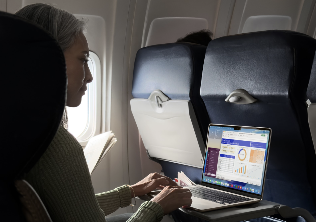 Apple nos da el dispositivo ideal para viajar, especialmente para herramienta de entretenimiento o trabajo en los vuelos. El iPad Air se actualiza con el chip M4, mejorando el rendimiento. Apple señala que ofrece un desempeño superior frente a la generación anterior, con mejoras en gráficos y procesamiento para tareas creativas y multitareas exigentes.