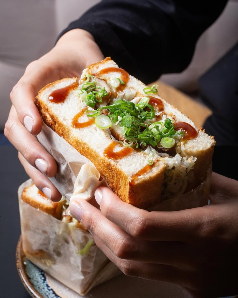 Este lugar es un templo dedicado al sando. Como su nombre lo indica, aquí se especializan en el clásico tonkatsu sando: cerdo empanizado crujiente, pan blanco ultra suave y una salsa tonkatsu ligeramente dulce. También hay opciones con wagyu y ebi fry (camarón), y una estética japonesa minimalista que lo convierte en el spot favorito de Instagram.
