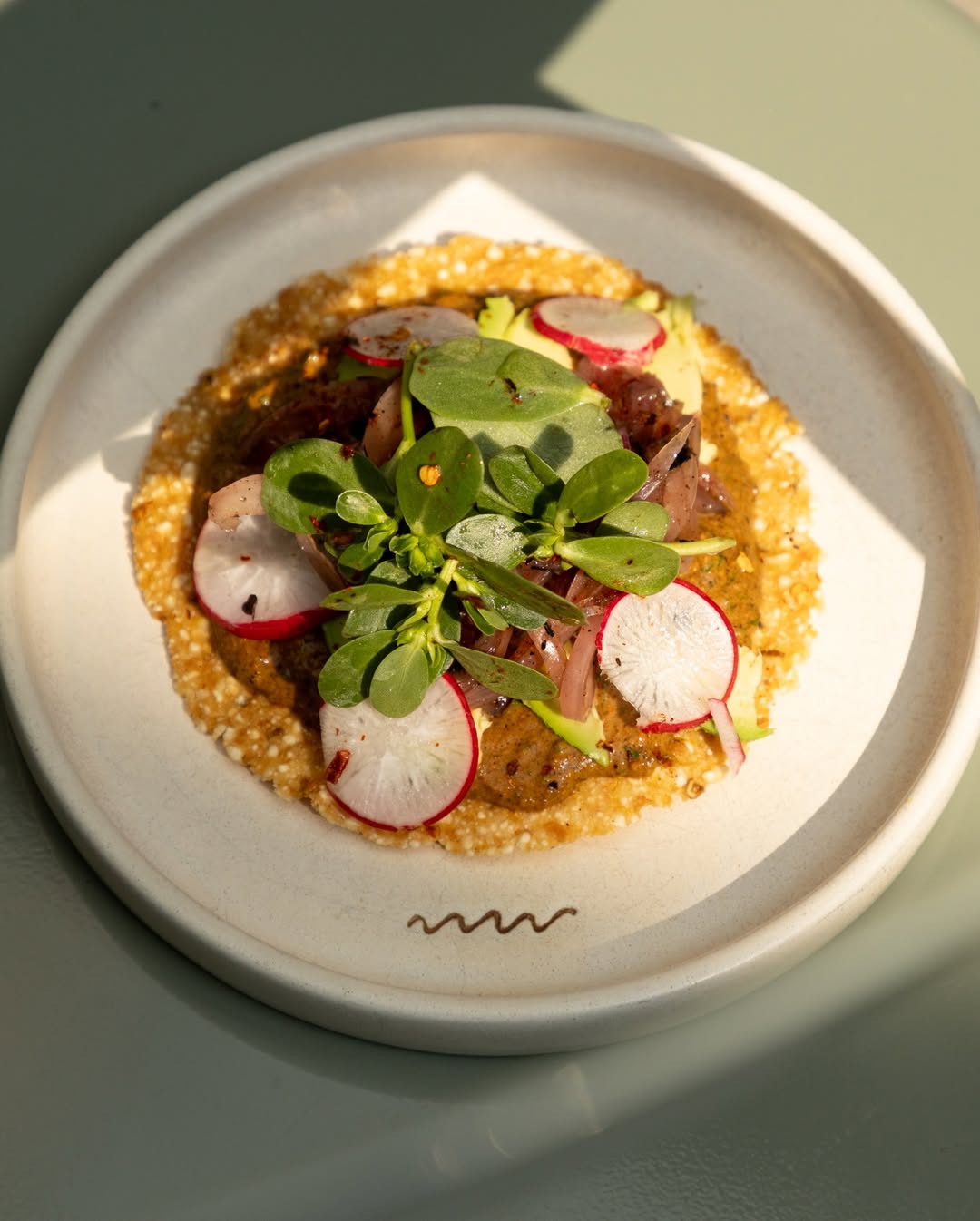 “Alta cocina informal” con sazón viajado: el menú juega con sabores de Asia, Medio Oriente y Europa del Este, aterrizados con ingredientes mexicanos. Perfecto para ir con hambre y curiosidad.