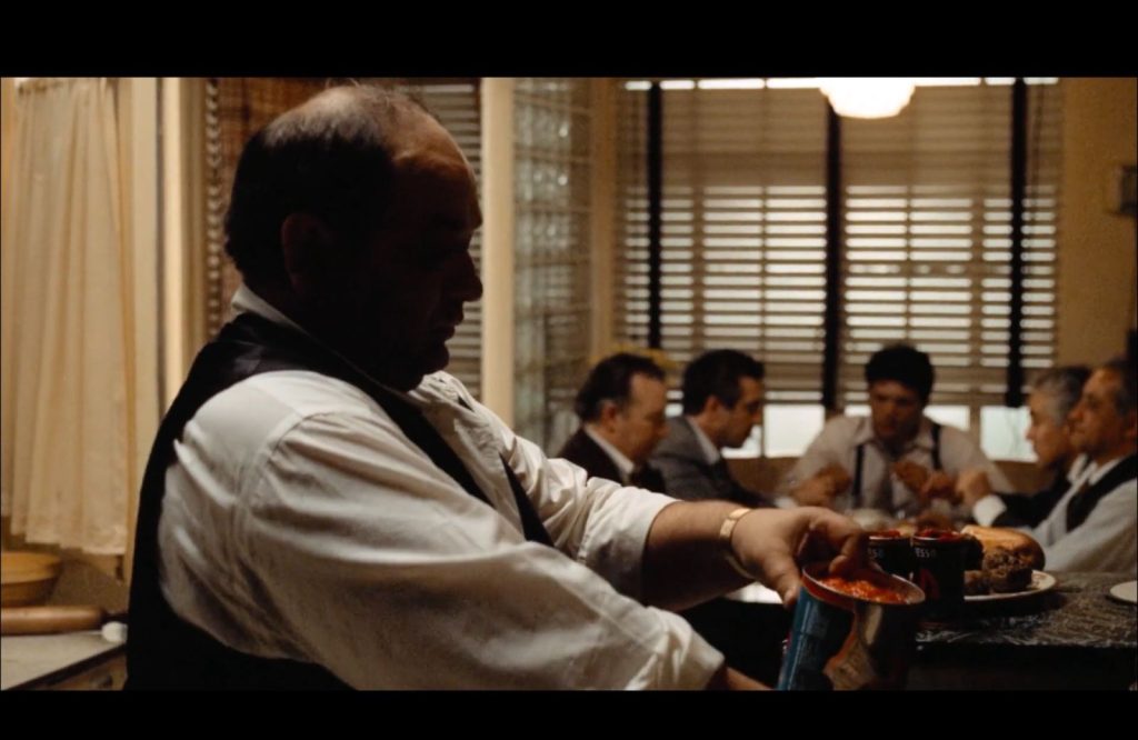 En una de las escenas más recordadas de la saga, Peter Clemenza comparte su receta de salsa mientras cocina para la familia. La preparación no es solo un momento doméstico dentro del universo de la mafia; también funciona como una declaración de identidad.