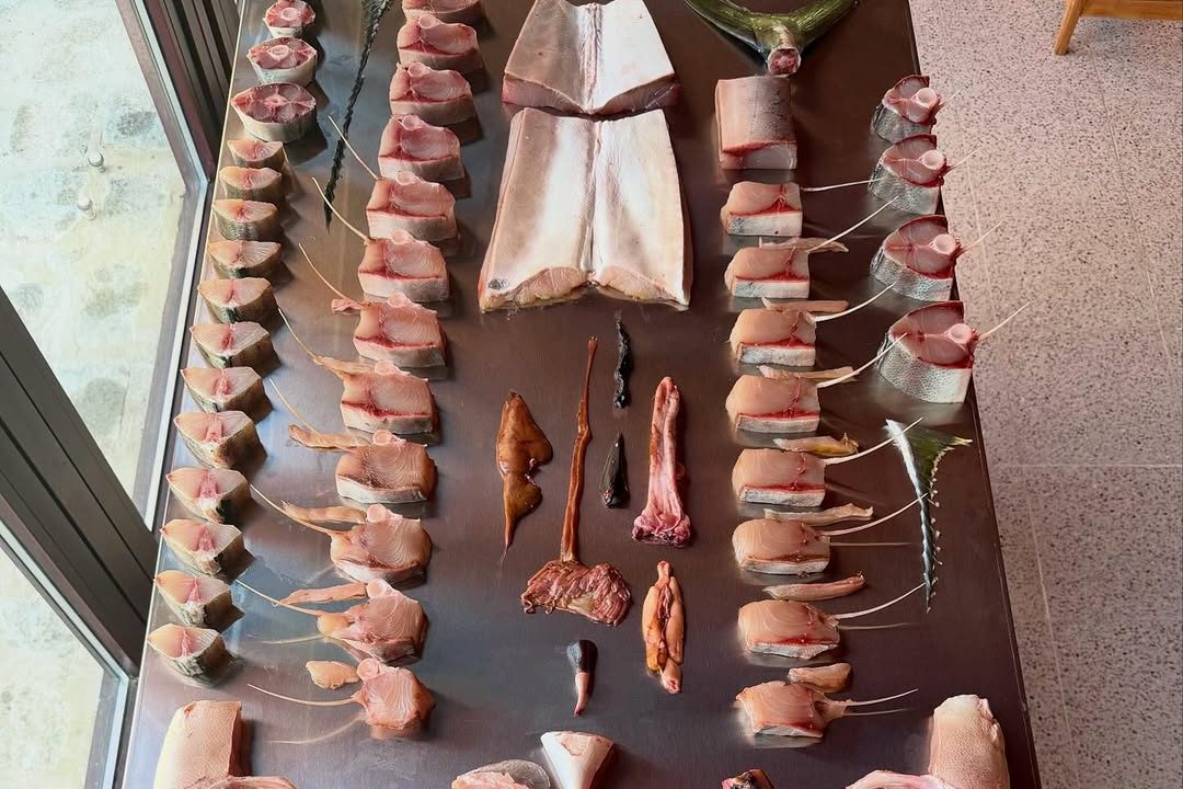 Uno de los pilares de su cocina es la maduración en seco del pescado. Este es un proceso que puede durar días o semanas y que permite desarrollar sabor, textura y profundidad. Así, se aleja de la idea tradicional de que el pescado debe consumirse inmediatamente. A esto se suma un enfoque de “carnicería de pescado”. En este enfoque, las piezas se descomponen en cortes estructurados, lomos, chuletas y secciones similares a los de la carne.