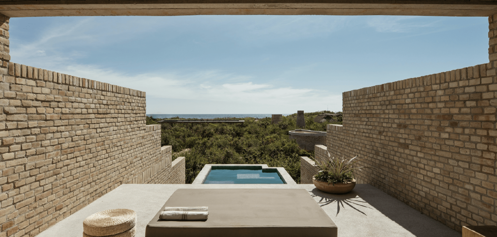 El espacio, diseñado por el renombrado arquitecto Alberto Kalach, es una experiencia en sí misma: villas privadas, spa hexagonal, piscina circular y un restaurante al aire libre que se funde con el entorno. El objetivo es simple: reconectar con la tierra, con uno mismo y con el momento presente.